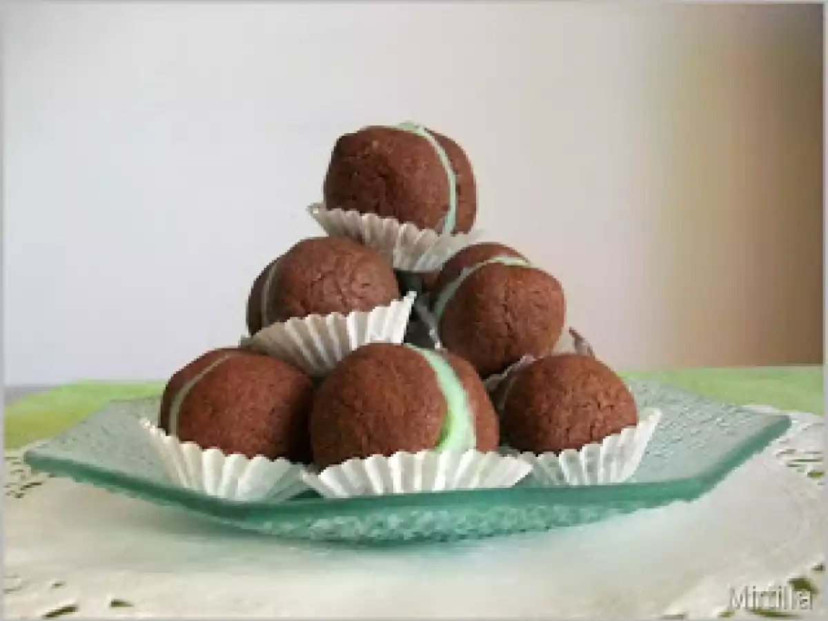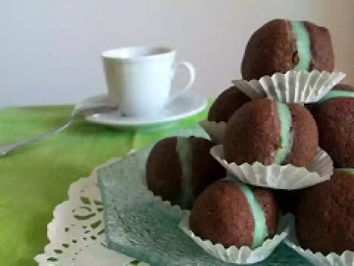 Pasticcini menta e cioccolato vota adesso PrecedenteProssimo Altrofacile35 min1388 Kcal Invia questa ricetta ad un amico Stampa la ricetta Contatta l'autore della Ricetta Pubblica la foto di questa ricetta Ingredienti 2 140 g di farina 70 g zucchero a velo 130 g burro freddo a pezzettini 5 cucchiai rasi di maizena 2 cucchiai colmi di cacao 2 tuorli 1 bustina di vanillina Per la crema al burro : 63 g di burro a temperatura ambiente 33 g di zucchero a velo vanigliato 1 cucchiaio di sciroppo di menta 1 punta di colorante alimentare verde Costo stimato: 2.53Euros€ (1.27€/Porzioni)