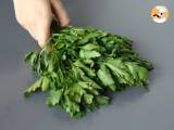 Lavate e tritate il prezzemolo. Sbucciate lo spicchio d'aglio.