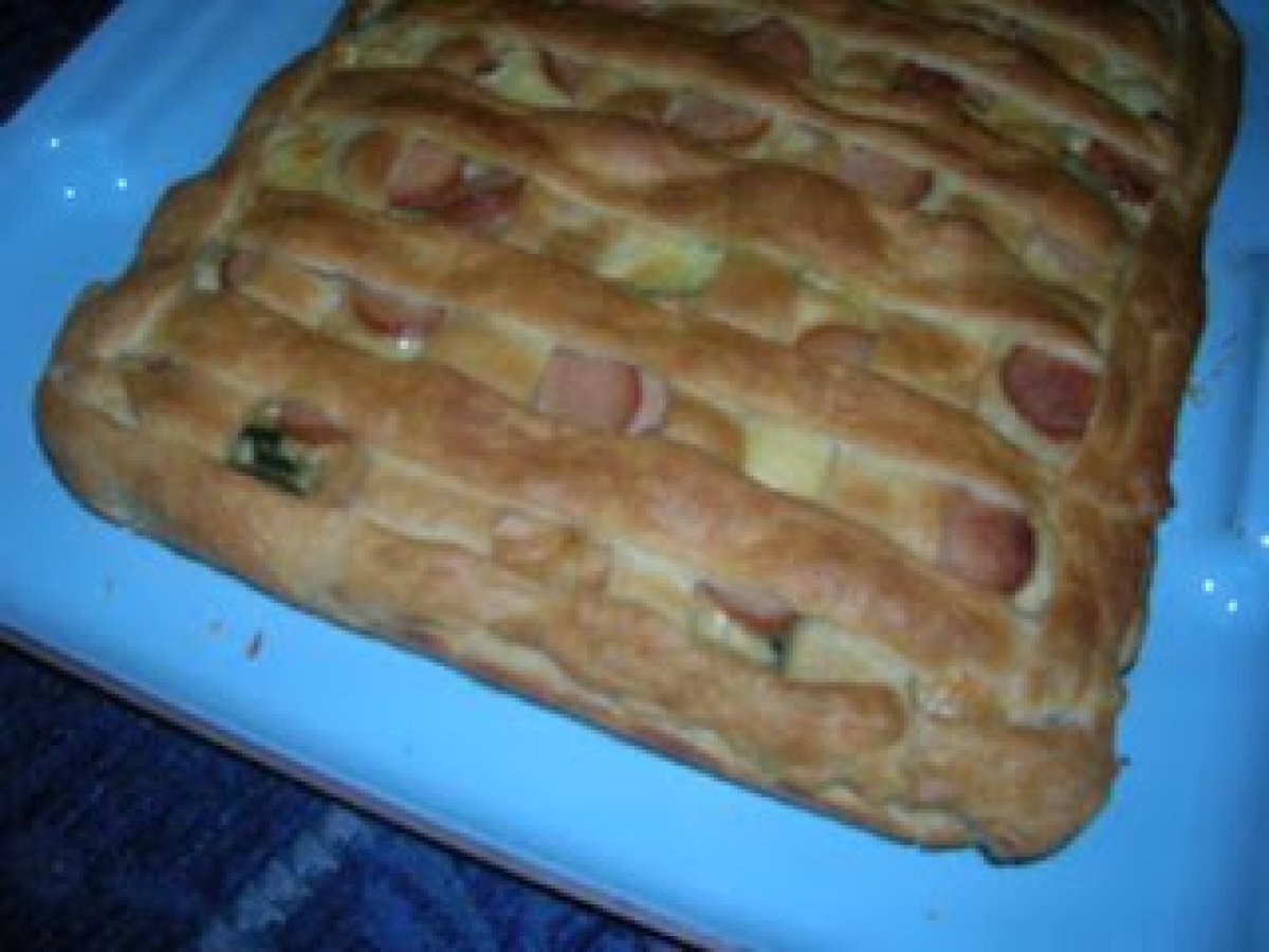 Pizza/sfoglia con zucchine e funghi PrecedenteProssimo Altrofacile1 ora4165 Kcal Invia questa ricetta ad un amico Stampa la ricetta Contatta l'autore della Ricetta Pubblica la foto di questa ricetta Ingredienti 4 1 rotolo di sfoglia 1 rotolo di pizza 4 zucchine genovesi 500 g funghi 2 cipolle scalogno 2 wurstel grandi 200 scamorza affumicata olio extravergine d'oliva sale e pepe qb Costo stimato: 49.01Euros€ (12.25€/Porzioni)