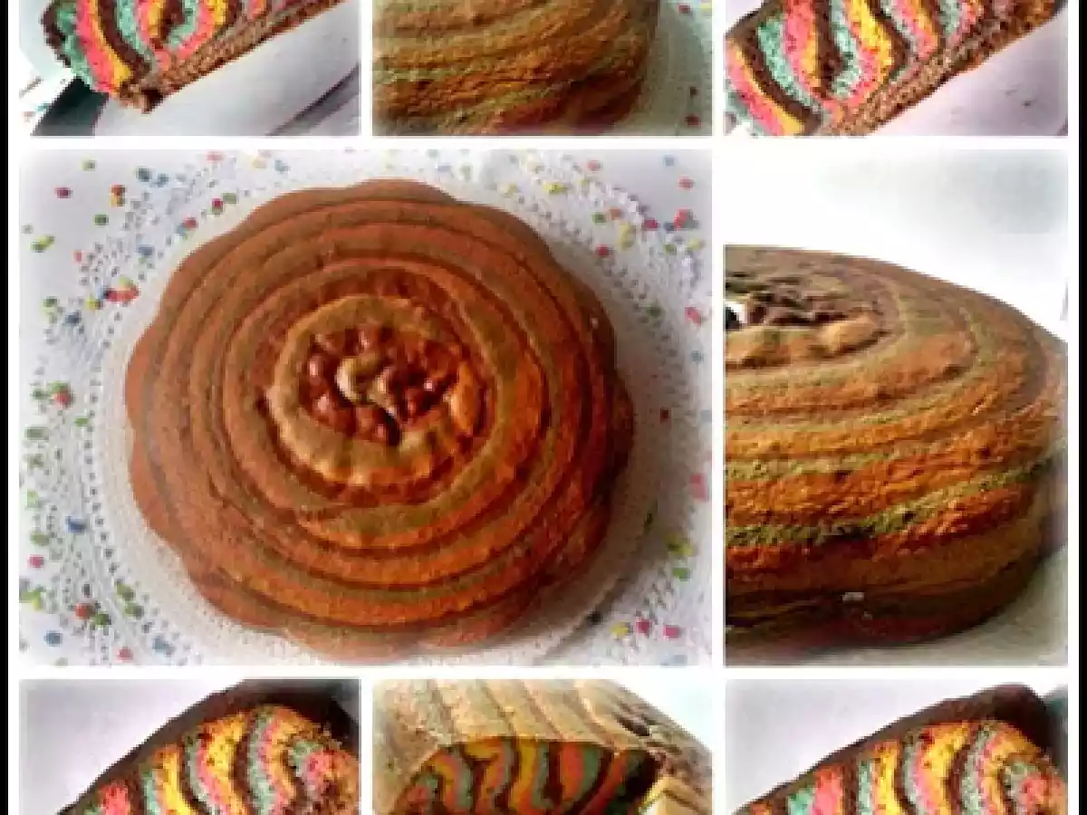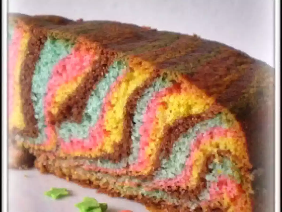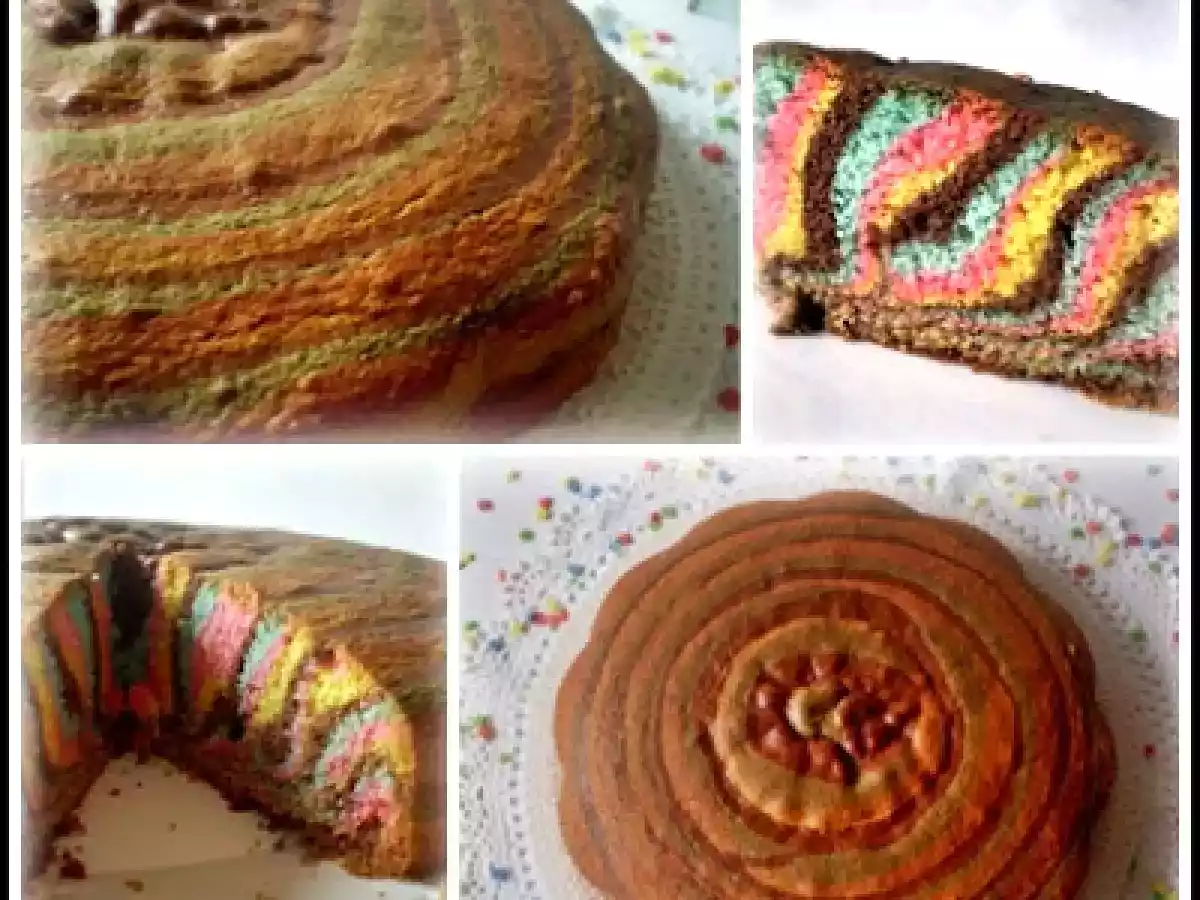 Rainbow cake... ( torta allegra ).......mille colori in una torta!!! PrecedenteProssimo Altrofacile1 h 10 m803 Kcal Invia questa ricetta ad un amico Stampa la ricetta Contatta l'autore della Ricetta Pubblica la foto di questa ricetta Ingredienti 3 3 uova 150 g di zucchero 200 g di farina 00 100 ml di olio 80 ml di acqua 2 cucchiaini di lievito per dolci Coloranti alimentari 1 cucchiaio di cacao amaro diluito in un dito d'acqua Costo stimato: 1.12Euros€ (0.37€/Porzioni)