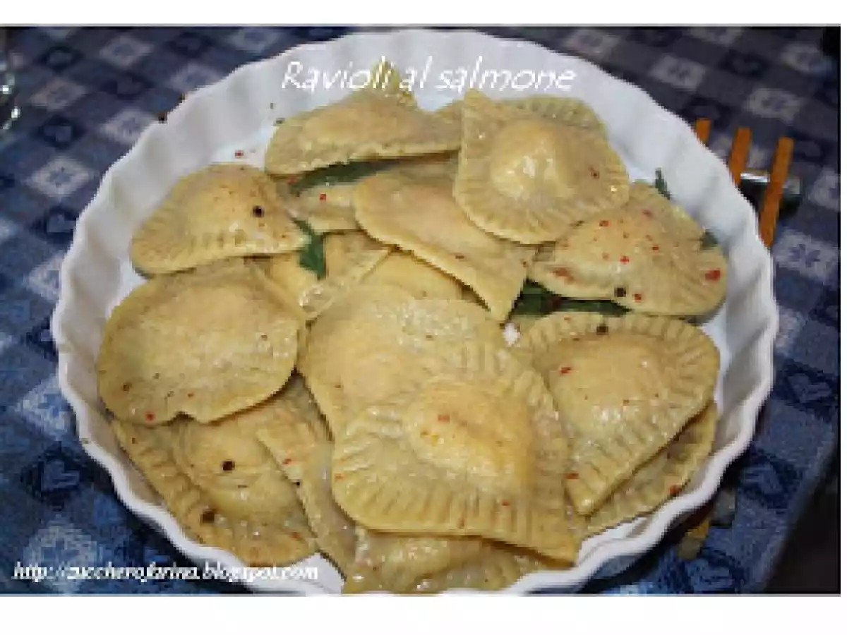 Ravioli al salmone vota adesso PrecedenteProssimo Altrofacile35 min192 Kcal Invia questa ricetta ad un amico Stampa la ricetta Contatta l'autore della Ricetta Pubblica la foto di questa ricetta Ingredienti 2 1 trancio di salmone 125 g di ricotta vaccina erba cipollina Costo stimato: 3Euros€ (1.5€/Porzioni)