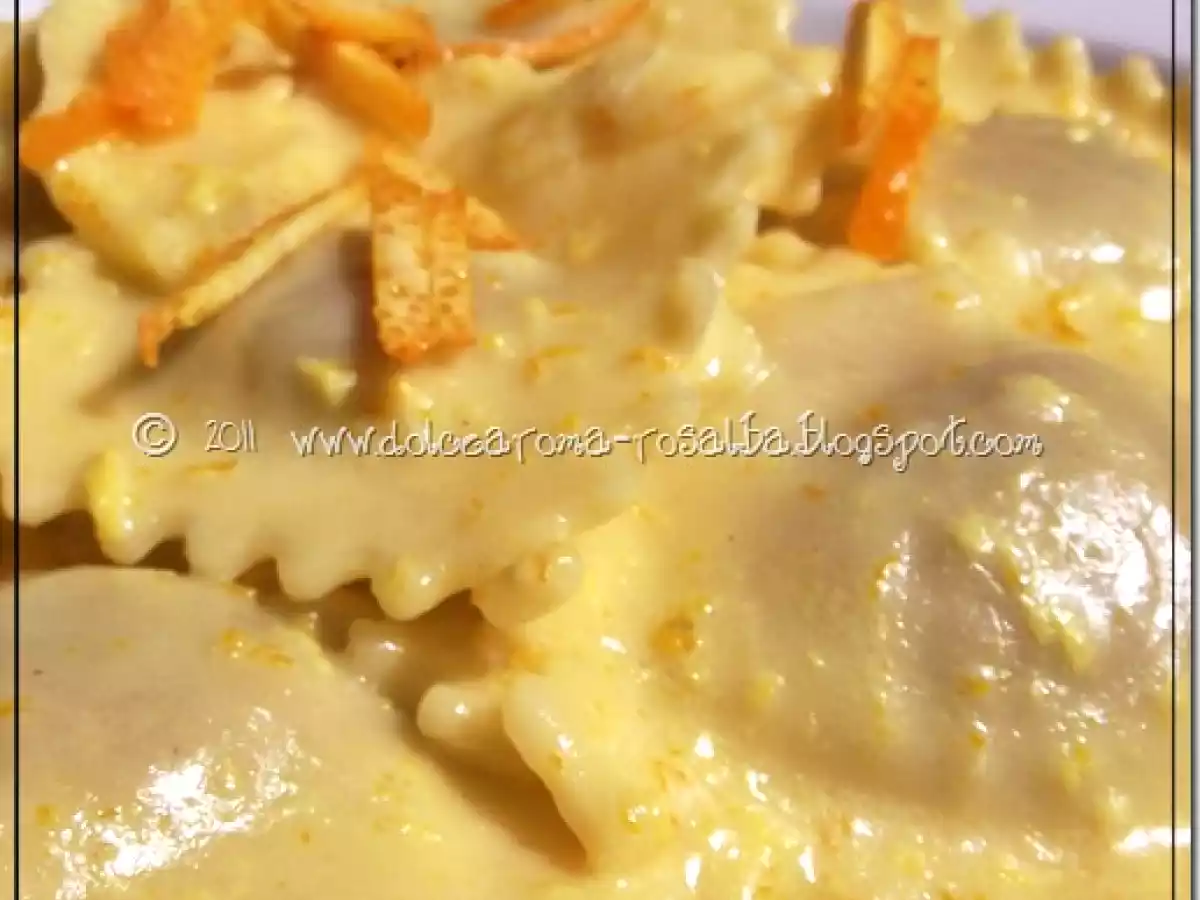 Ravioli di brasato con crema all arancia vota adesso Altrofacile30 min Invia questa ricetta ad un amico Stampa la ricetta Contatta l'autore della Ricetta Pubblica la foto di questa ricetta Ingredienti 4 1 confezione di ravioli al brasato da 250 gr; 1 arancia non trattata; 20 gr di burro; 60 gr di panna fresca; 80 gr di brodo vegetale; 1 tuorlo; sale.