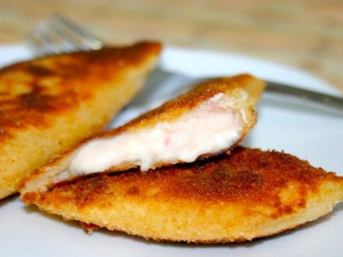 - Con un tagliapasta forma dei cerchi delle dimensioni che preferisci. Farcisci il cerchio di pasta con prosciutto, formaggio tagliato a dadini e un cucchiaio di besciamella.