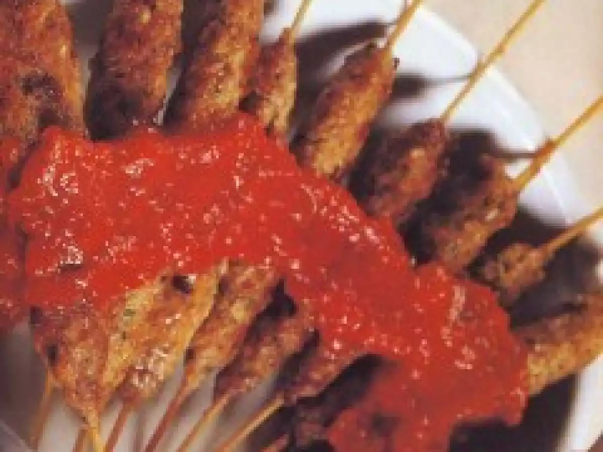 Spiedini in salsa piccante vota adesso AltroDifficile9 min Invia questa ricetta ad un amico Stampa la ricetta Contatta l'autore della Ricetta Pubblica la foto di questa ricetta Ingredienti 1 ingredienti per 8 persone 750g.di carne macinata mista di maiale e manzo/2 panini piccole/latte/ 3 uova/60g.di parmigiano gratt.spicchi d'aglio/1 ciuffo di prezzemolo/olio exstraverginedi oliva. per la salsa 500g.di pomodori da sugo/2 peperoncini rossi fresci /6 scalogni/1 cucchiaino di zucchero/4 cucchiai di olioexstravergine di oliva/sale