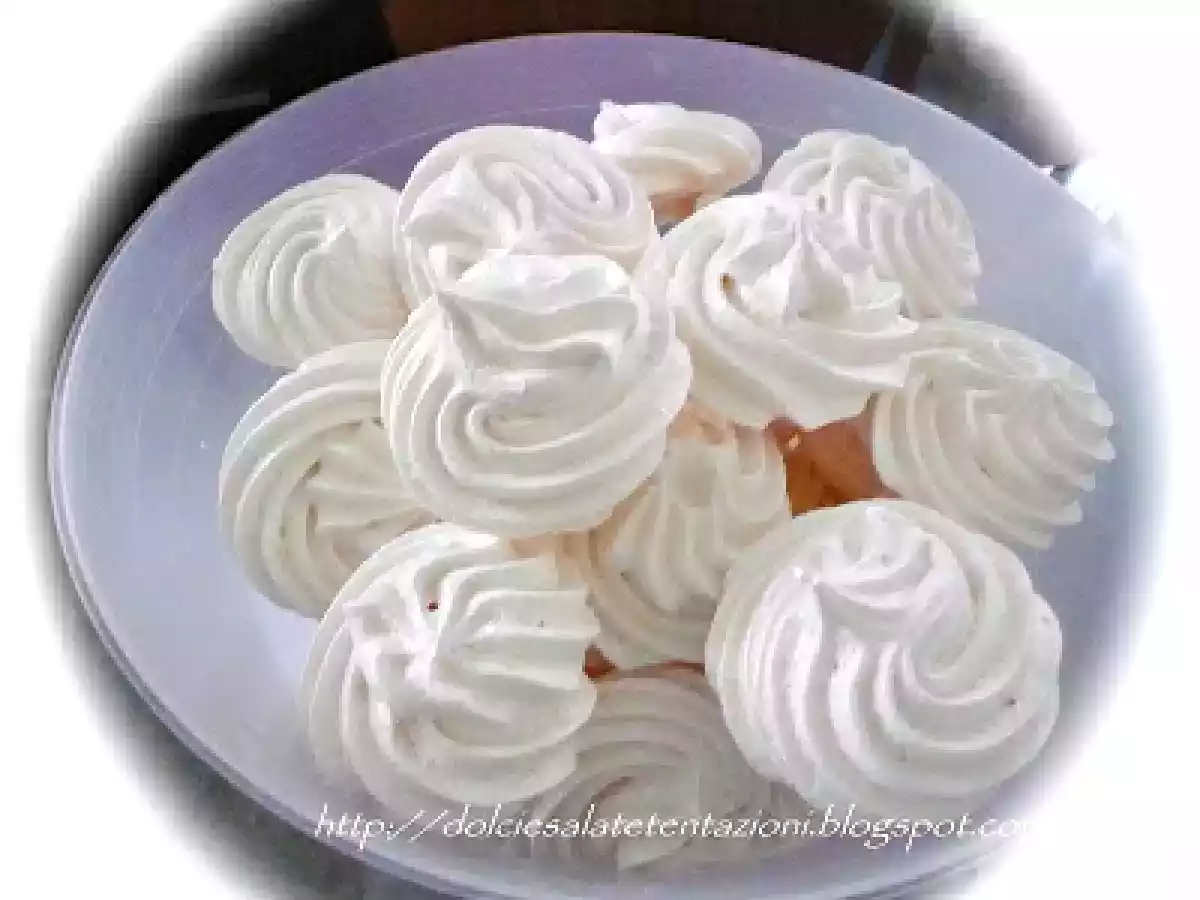- Quando la meringa è bella uniforme e lucida, metterla in una sac à poche, o prenderla con il cucchiaio, e sistemarla a ciuffi sulla leccarda coperta da cartaforno.