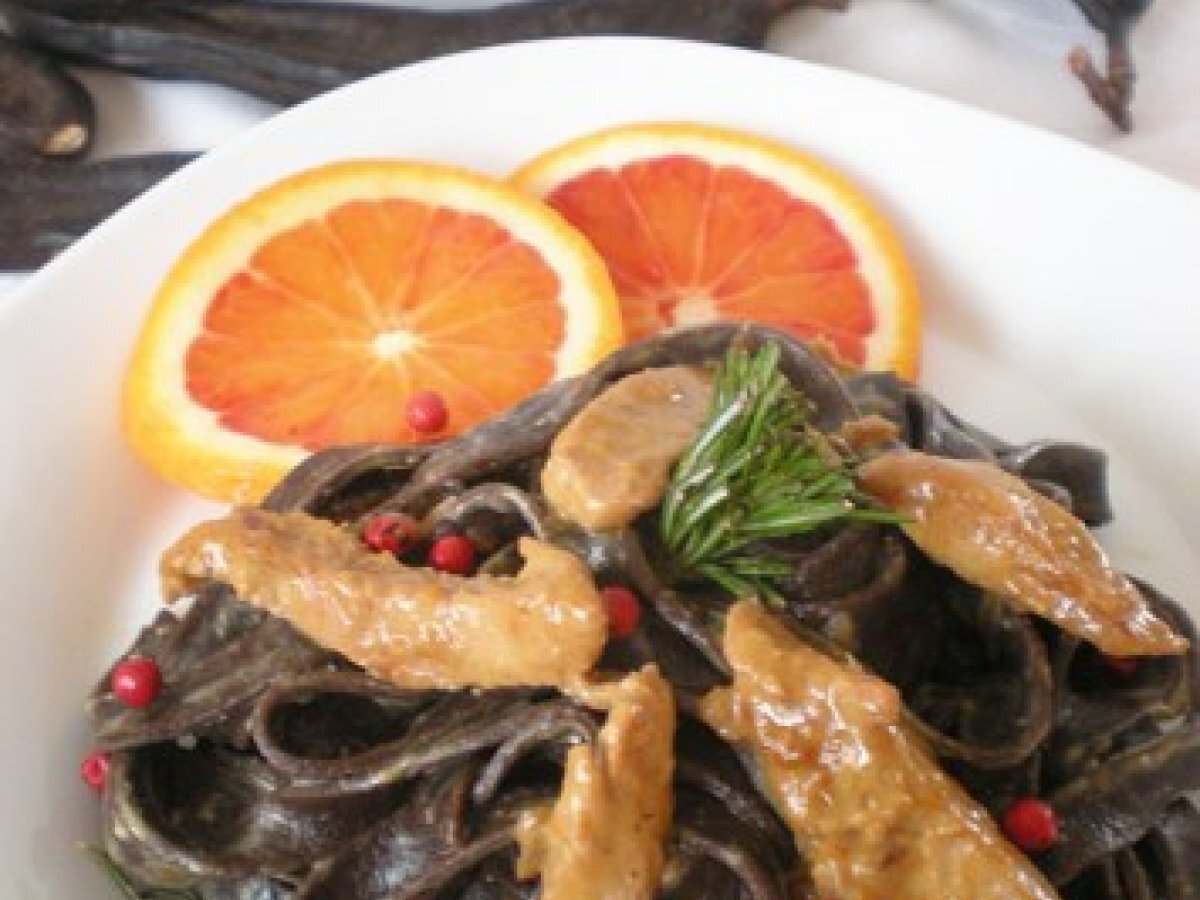 Tagliatelle alla farina di carrube e... "spacciatori di lievito madre"!! vota adesso Altrofacile30 min449 Kcal Invia questa ricetta ad un amico Stampa la ricetta Contatta l'autore della Ricetta Pubblica la foto di questa ricetta Ingredienti 4 le tagliatelle: 160 g circa di semola di grano duro 40 g farina di carrube 2 uova Per il sugo: 200 g di tacchino ½ cipolla rossa 2 cucchiai di olio ½ bicchiere di succo d'arancia un po' di zenzero grattugiato peperoncino pepe rosa pochissimo rosmarino* 4-5 cucchiai di panna parmigiano a piacere