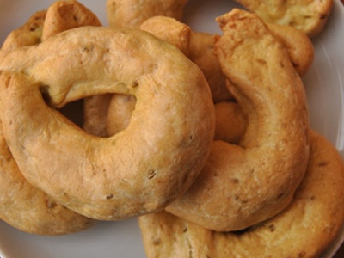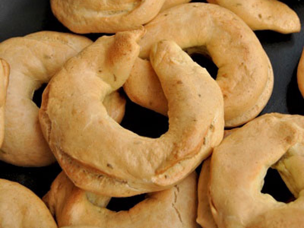 - Formare con l?impasto delle ciambelline di circa 50 grammi ciascuna e lessarle in acqua bollente poche alla volt. Quando torneranno in superficie, toglierle prelevandole con la schiumarola e metterle ad asciugare su un panno.