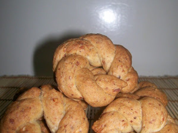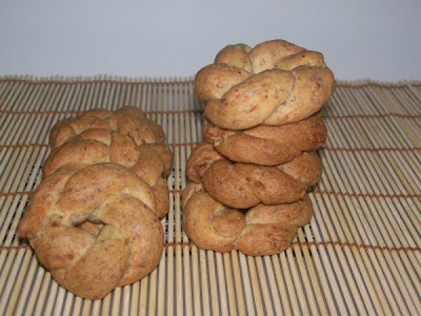 - Riprendere l'impasto e tagliare tanti piccoli pezzetti, arrotolarli a mò di salsicciotti abbastanza sottili e, a due a due, intrecciarli e unire le estremità.