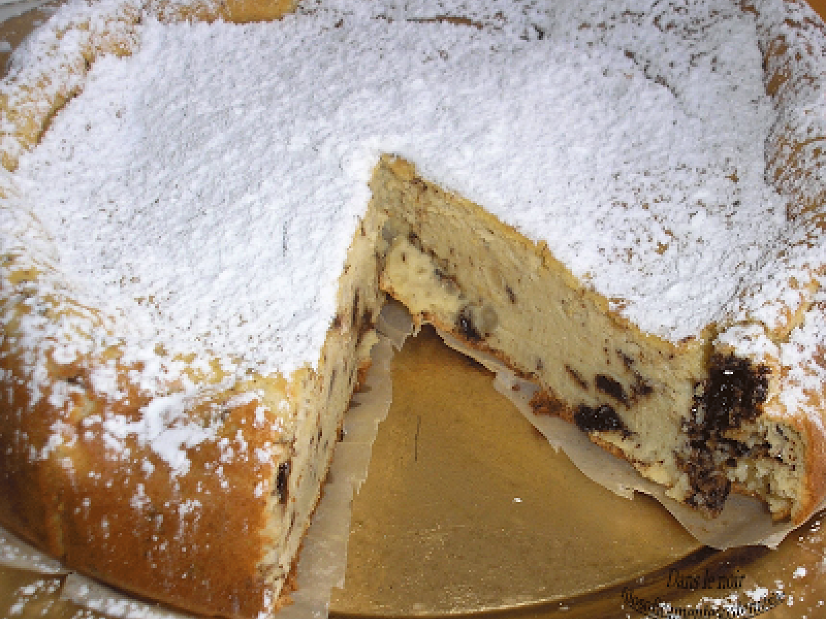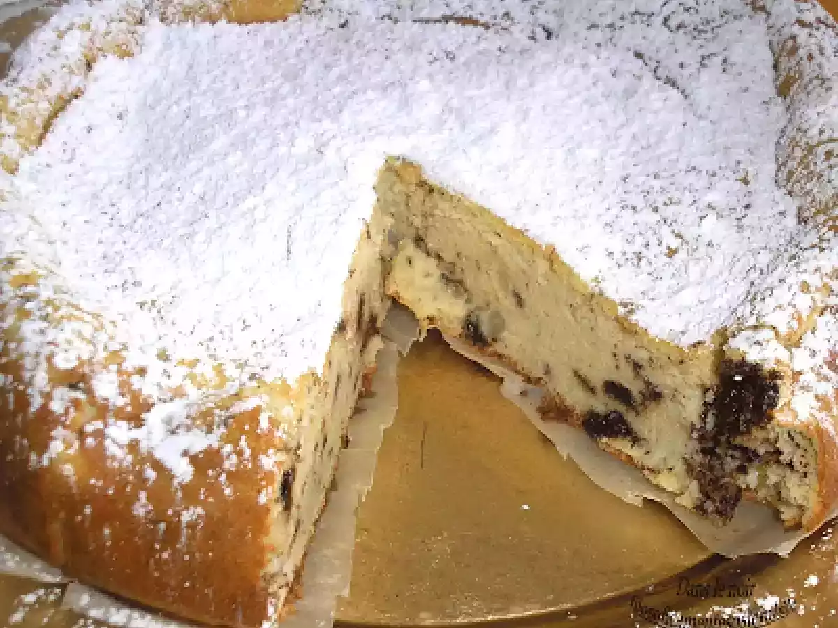 Torta di ricotta con gocce di cioccolato e pinoli PrecedenteProssimo Altrofacile1 h 25 m Invia questa ricetta ad un amico Stampa la ricetta Contatta l'autore della Ricetta Pubblica la foto di questa ricetta Ingredienti 5 500 g di ricotta 100 g di gocce di cioccolata 5 cucchiai di zucchero 4 cucchiai di farina 4 uova (gli albumi separati dai tuorli) la scorza grattugiata di un limone una punta di cucchiaino di cannella 1 cucchiaio di pinoli 1 pizzico di sale