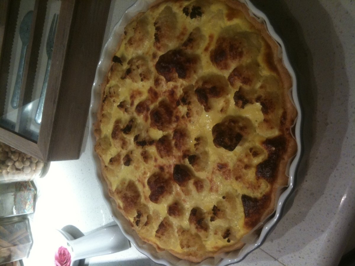 Torta salata di cavolfiori al curry e kefir Altromedia1 h 20 m271 Kcal Invia questa ricetta ad un amico Stampa la ricetta Contatta l'autore della Ricetta Pubblica la foto di questa ricetta Ingredienti 8 400 g kefir (latte fermentato caucasico) o yogurt bianco 1 cavolfiore medio 3 uova intere 1 cucchiaino curry 1 pizzico noce moscata sale pepe parmigiano grattugiato per la pasta brisé all'uovo: 200 g farina 00 100 g burro freddo a cubetti 1 uovo intero 60 g acqua ghiacciata Costo stimato: 5.78Euros€ (0.72€/Porzioni)