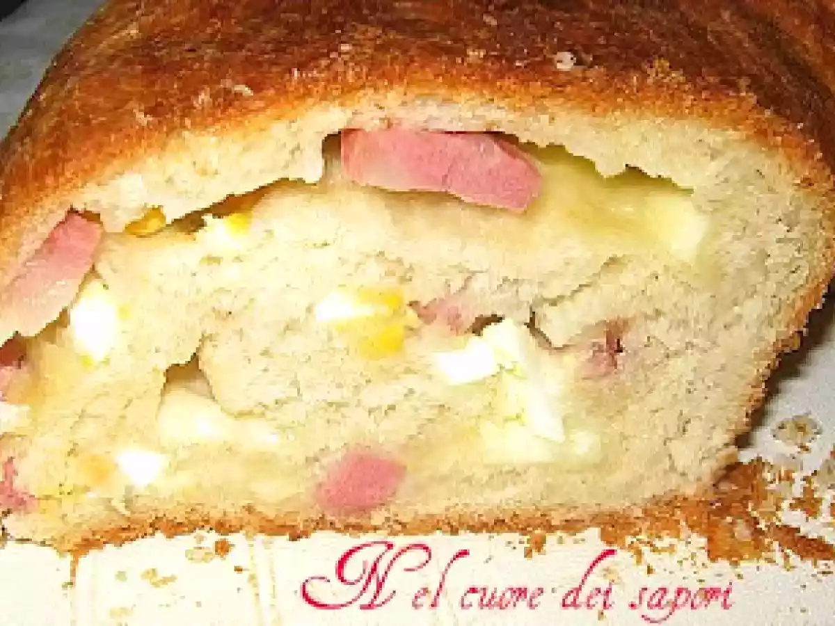 Tortano napoletano Altromedia2 h 25 m Invia questa ricetta ad un amico Stampa la ricetta Contatta l'autore della Ricetta Pubblica la foto di questa ricetta Ingredienti 4 700 gr di farina 00 (nell'originale 400 g. farina 00 + 300 gr. farina manitoba) 150 gr di strutto (nell'originale 120 gr margarina + -60 gr olio di semi) 1 lievito di birra 1 cucchiaio di sale 1 cucchiaino di zucchero 80 gr di formaggio grattugiato (nell'originale 100 g formaggio romano grattugiato) pepe 200 gr acqua 200 gr latte tiepido Per il ripieno potete comunque usare il ripieno che più vi piace : 4 uova sode mortadella a cubetti provola dolce a cubetti