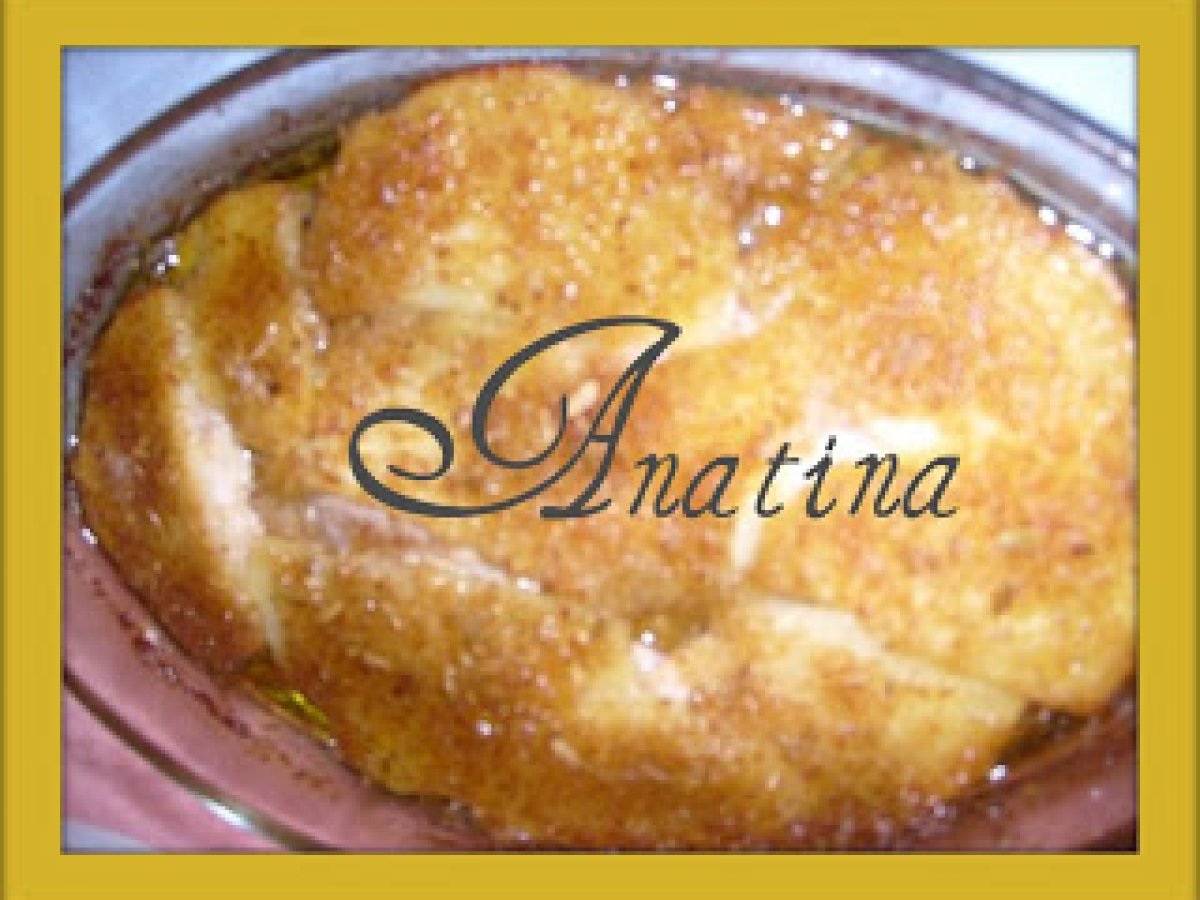 Tortino di alici e finocchi al pepe vota adesso PrecedenteProssimo Altrofacile35 min Invia questa ricetta ad un amico Stampa la ricetta Contatta l'autore della Ricetta Pubblica la foto di questa ricetta Ingredienti 2 alici una teglia un filo d'olio extravergine di oliva un po' di pangrattato uno di patate tagliato sottile sale olio semi di finocchietto pestati nel mortatio formaggio grattugiato pangrattato olio extravergine di oliva pepe