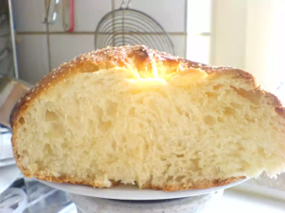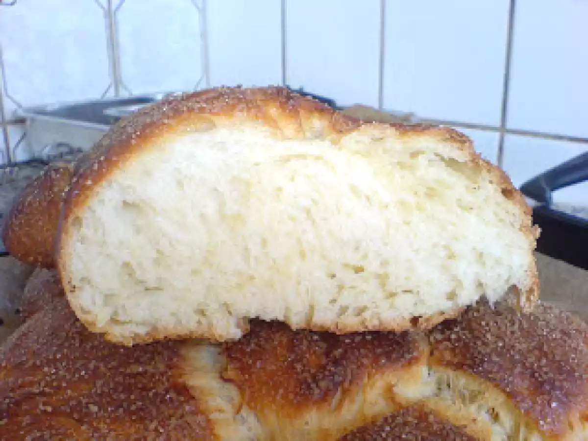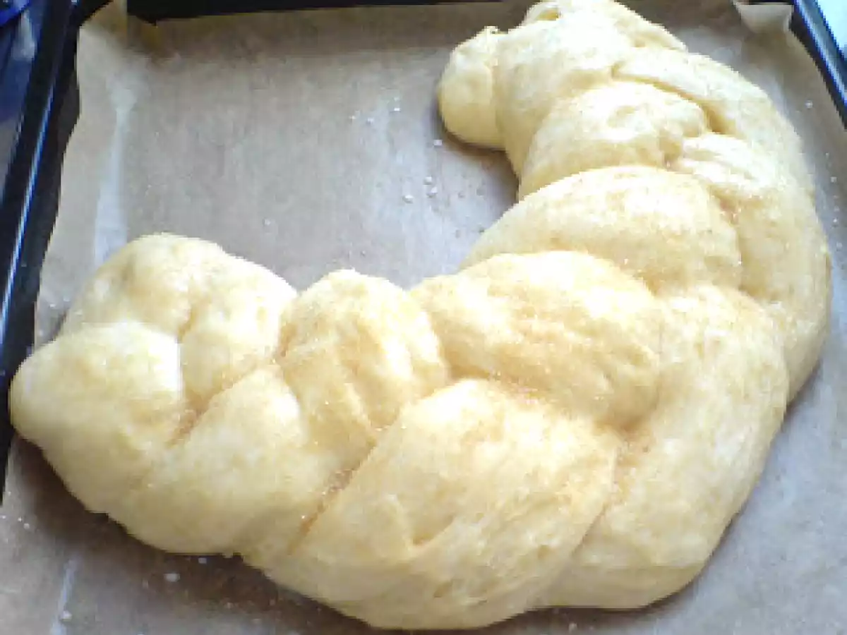 - Mettete a lievitare in forno sulla placca rivestita di cartaforno per tutta la notte e la mattina seguente spennellato la treccia di latte e spolverato di zucchero di canna.