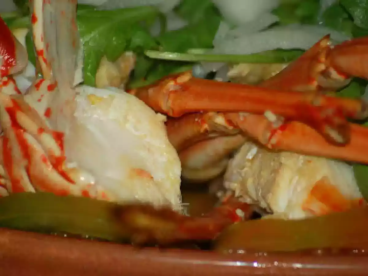 - Lavate la rucola e sistematela sopra. Cospargete con la cipolla che avrete precedentemente sciaquato.Sistemate in frigorifero e lasciate che si raffreddi. Prima di servire irroratela con il vinagrette lasciato da parte precedentemente.