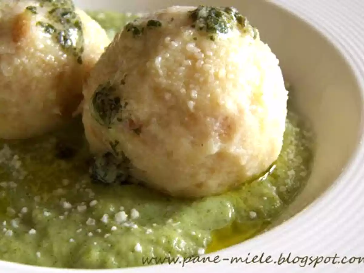 Canederli al formaggio con la crema di broccolo vota adesso PrecedenteProssimo Antipastofacile42 min410 Kcal Invia questa ricetta ad un amico Stampa la ricetta Contatta l'autore della Ricetta Pubblica la foto di questa ricetta Ingredienti 6 300 g di pane raffermo 3 uova 300 g di latte sale 2-3 cucchiai di farina 40 g di formaggio Per il condimento: 400 g di broccolo 80 g di burro 60 g di parmigiano grattugiato erba cipollina Costo stimato: 5.84Euros€ (0.97€/Porzioni)