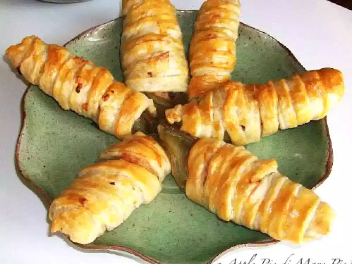 Cannoli di indivia belga PrecedenteProssimo Antipastomedia1 h 20 m Invia questa ricetta ad un amico Stampa la ricetta Contatta l'autore della Ricetta Pubblica la foto di questa ricetta Ingredienti 6 12 cespi di indivia belga 500 g pasta sfoglia, anche surgelata 200 g panna (io non l'ho usata) 150 g prosciutto cotto 120 g fontina 70 g cipolla ½ bicchiere di vino rosso 1 uovo parmigiano grattugiato burro olio d'oliva sale pepe