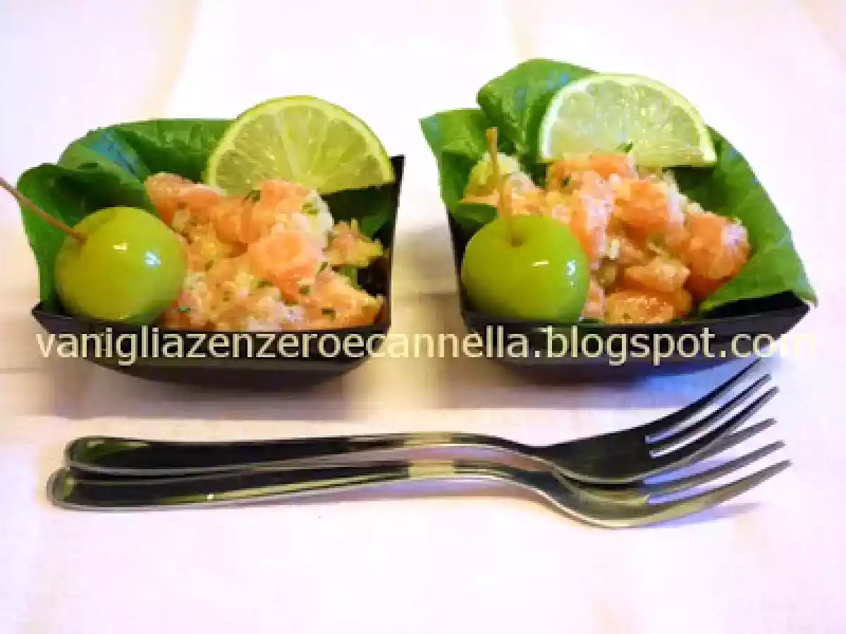 Carpaccio di salmone con mela vota adesso Antipastofacile35 min Invia questa ricetta ad un amico Stampa la ricetta Contatta l'autore della Ricetta Pubblica la foto di questa ricetta Ingredienti 2 1 fetta di salmone fresco Alcune fette di mela Un piccolo pezzo di limeprezzemolo zenzerosucco Sale Ages pepeolio mele aromatiche Marina Mandarin Colonnamini in alcool Toschi per decorarelime per decorare
