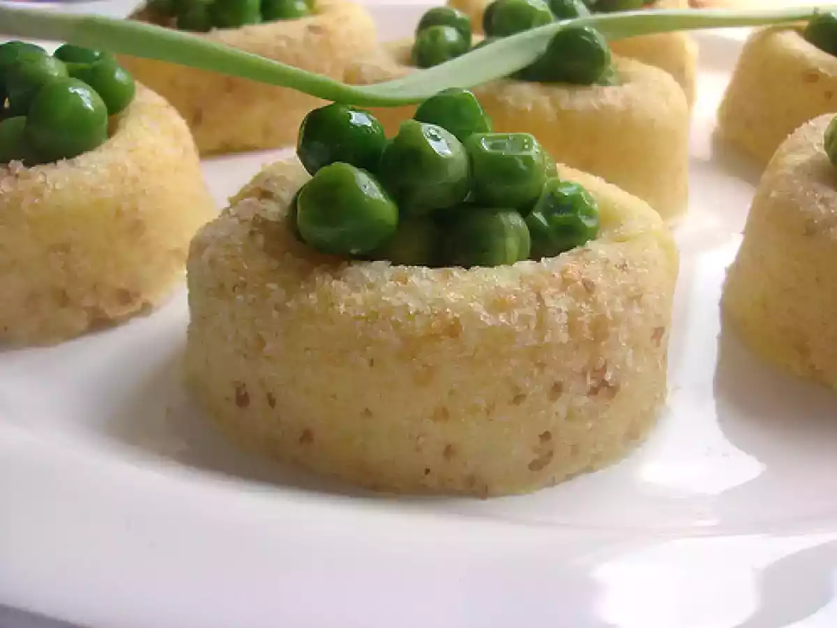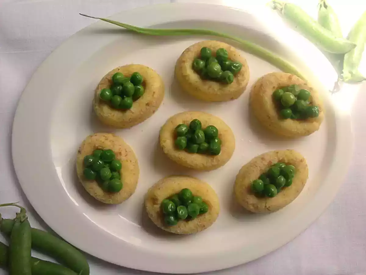 Cestini ovali di patate ai piselli novelli