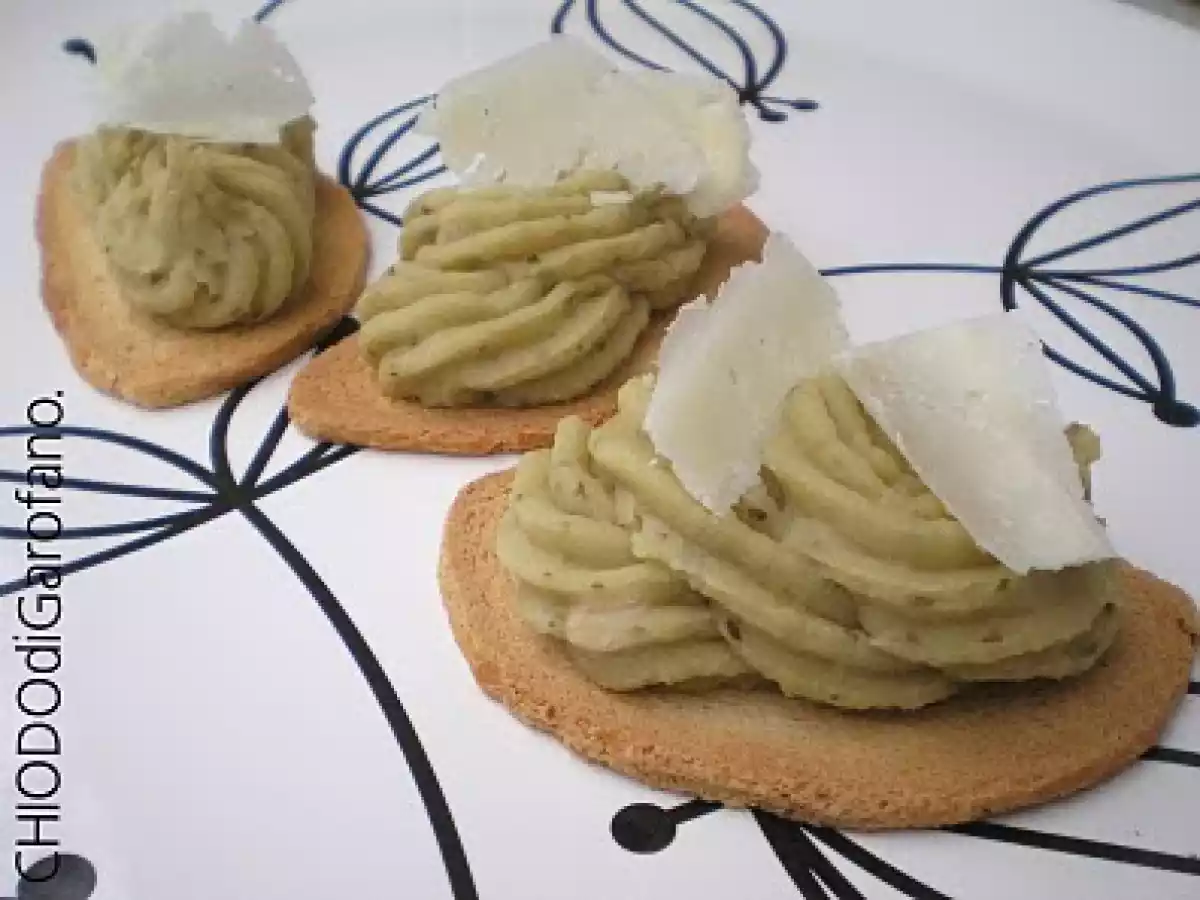 Crostini alla crema di fagioli e pesto vota adesso Antipastofacile35 min Invia questa ricetta ad un amico Stampa la ricetta Contatta l'autore della Ricetta Pubblica la foto di questa ricetta Ingredienti 2 1 patata grossa 150 g di fagioli in scatola 1 cucchiaio di pesto alla genovese pecorino a scaglie crostini