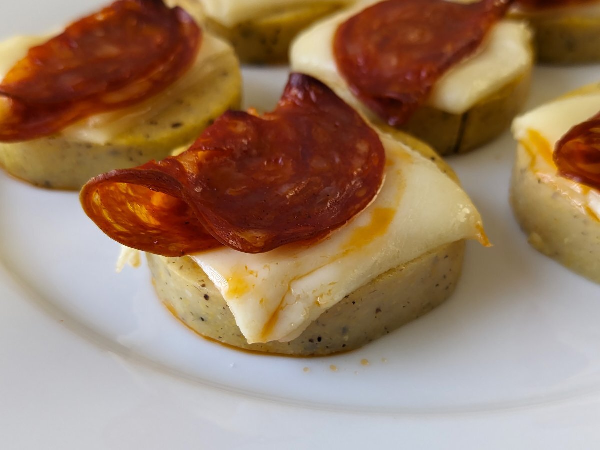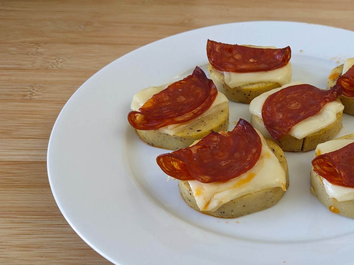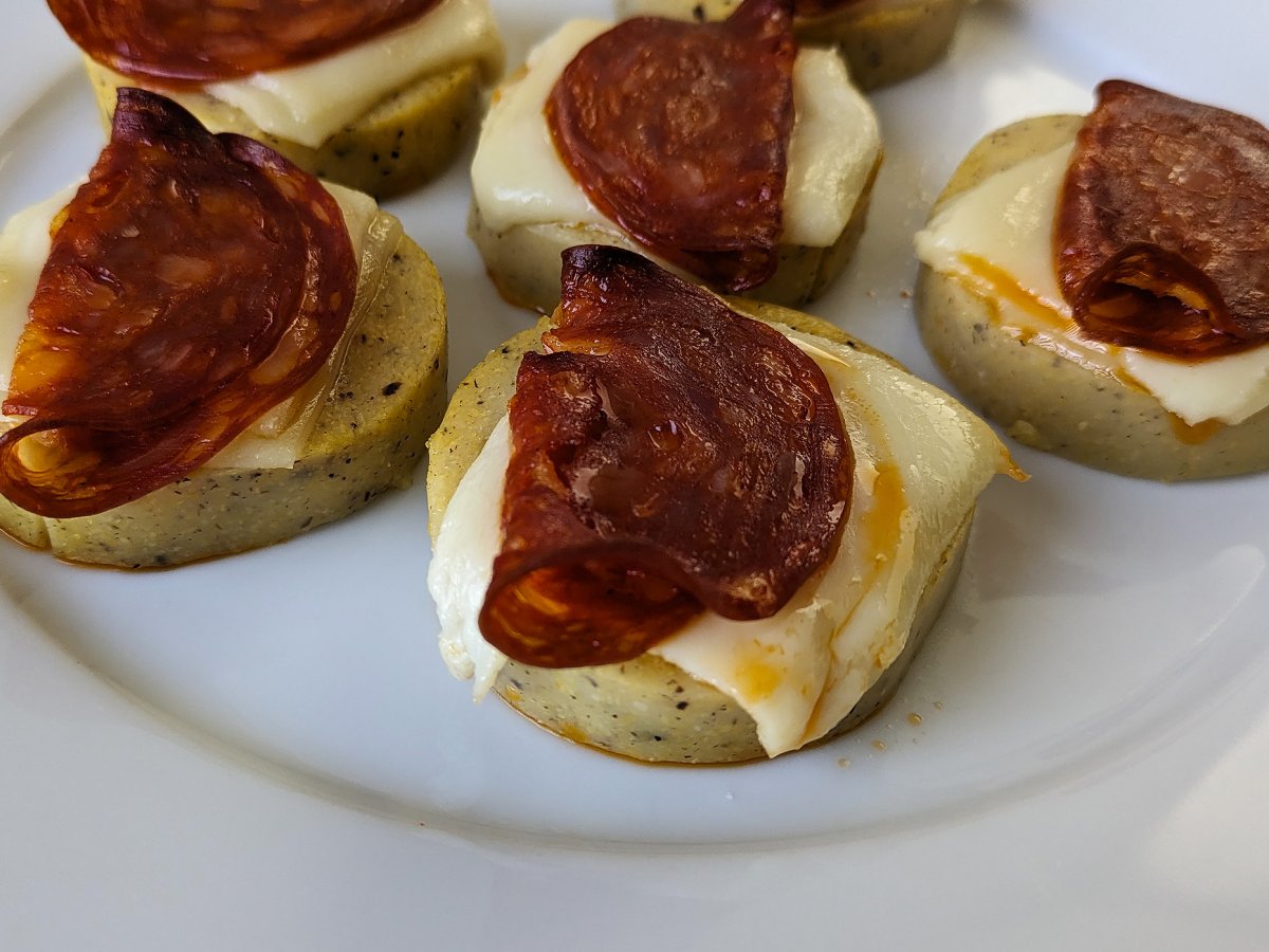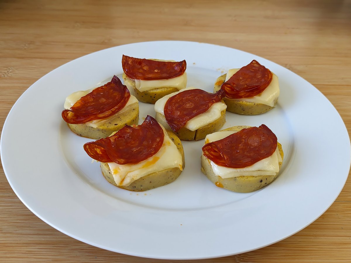 Crostini di polenta con scamorza e salame piccante