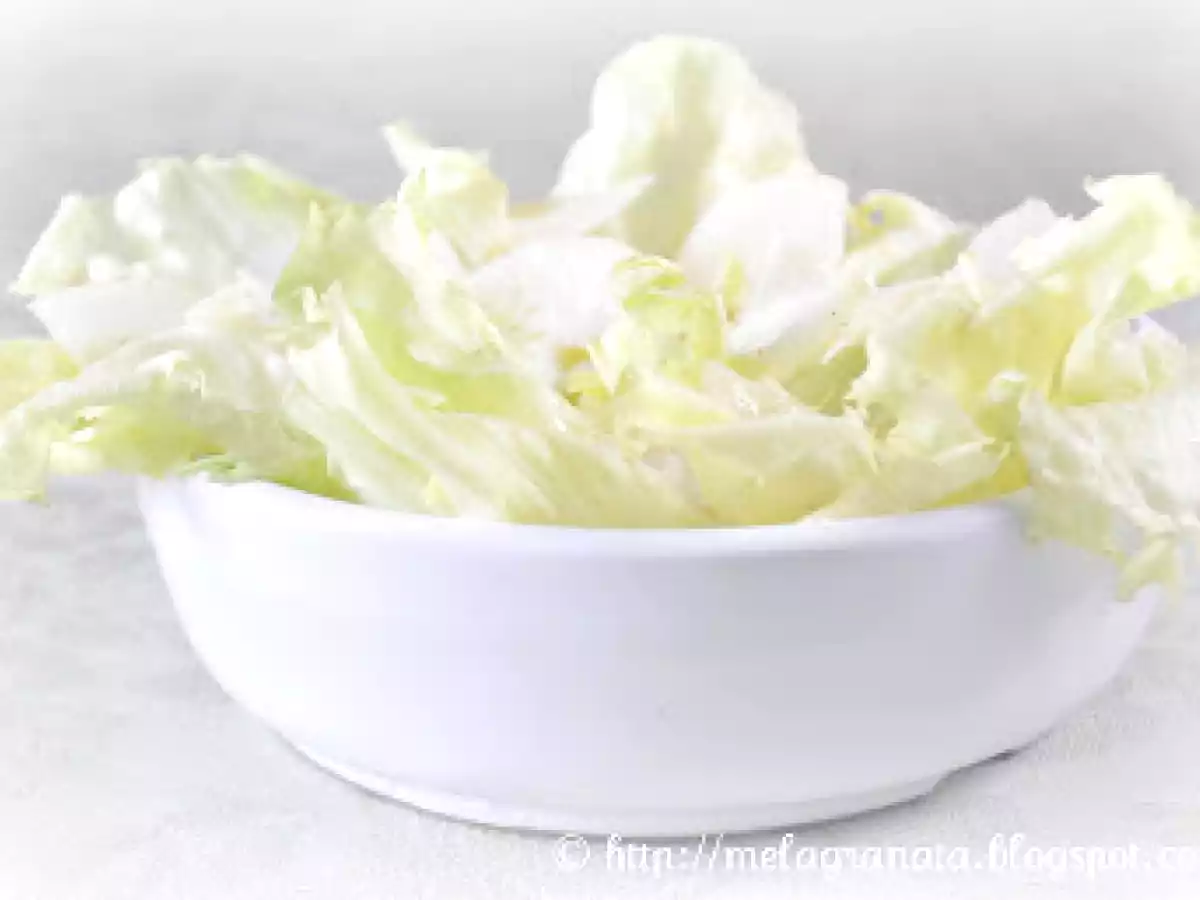 Elogio della banalità. insalata croccante di scarola, pere e parmigiano. vota adesso PrecedenteProssimo Antipastofacile15 min Invia questa ricetta ad un amico Stampa la ricetta Contatta l'autore della Ricetta Pubblica la foto di questa ricetta Ingredienti 1 1 cespo di scarola 1 pera parmigiano a scaglie olio extravergine di oliva sale limone pepe bianco di mulinello