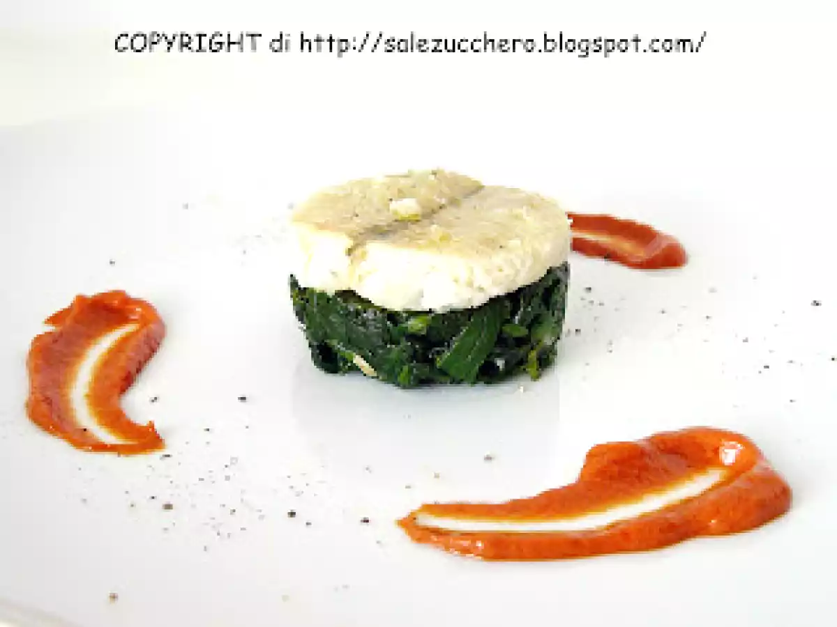 Filetto di platessa alla birra, spinaci, senape al pomodoro