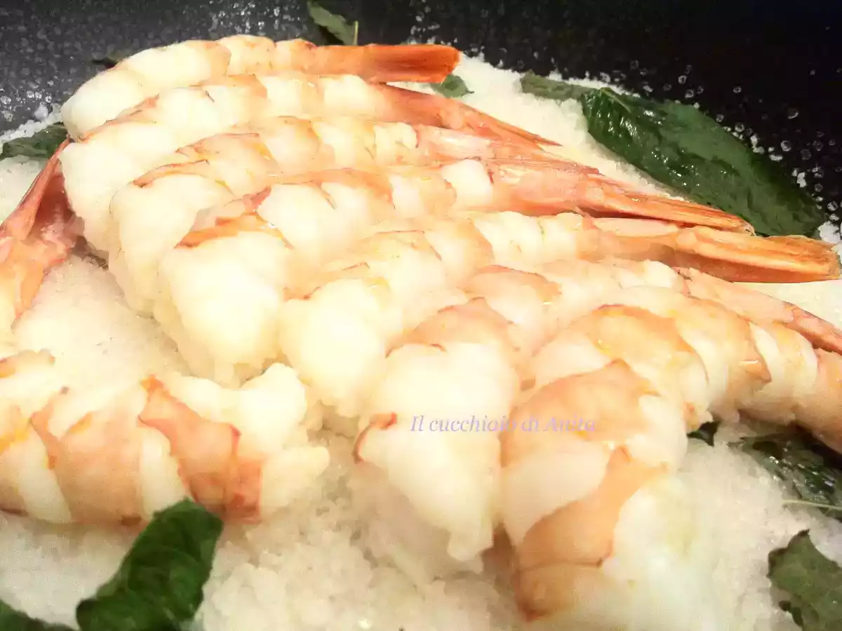 Gamberoni alla menta su piastra al sale aromatizzato