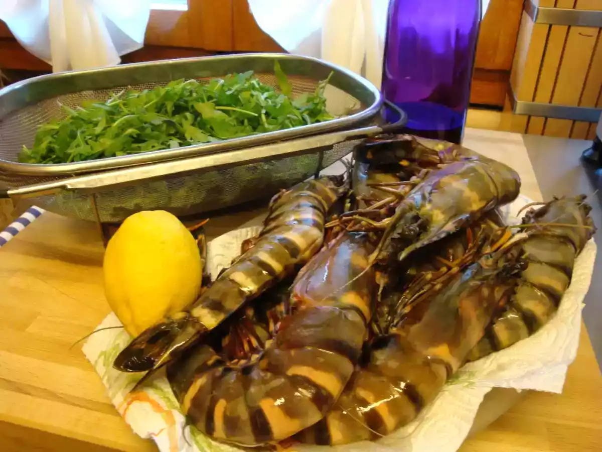 Eehh, questo piatto è tanto ghiotto quanto estremamente semplice ma, ve lo devo dire, per nulla economico. I crostacei costano in generale, e quelli giganti, se pur decongelati non fanno eccezione. Può essere una buona e scenica idea di antipasto, per una cena raffinata con i vostri amici oppure un piatto unico per un pranzo a due. Noi eravamo in 5 e dopo "cotanta raffineria" mio fratello ha pensato bene di aggiungere al pasto 4/5 fette di salame :p . Comunque costi a parte è anche molto veloce.