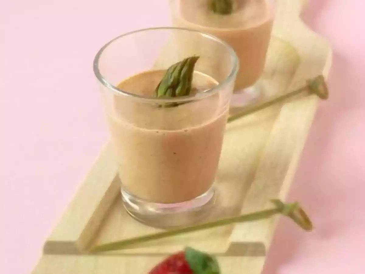 Gazpacho di fragole e asparagi PrecedenteProssimo Antipastofacile40 min271 Kcal Invia questa ricetta ad un amico Stampa la ricetta Contatta l'autore della Ricetta Pubblica la foto di questa ricetta Una ricetta molto particolare, ideale per chi ama l'agrodolce Ingredienti 2 140 g di fragole 130 g di asparagi 1 fetta di pane raffermo 3 cucchiai d’olio extravergine di oliva 1 presa di sale rosa dell’Himalaya 1/2 peperoncino 4-5 cubetti di ghiaccio 1 cucchiaio di aceto balsamico 1 piccolo pezzetto di aglio