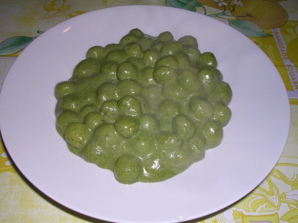 Gnocchetti in salsa di gorgonzola e spinaci vota adesso Antipastofacile1 h 10 m Invia questa ricetta ad un amico Stampa la ricetta Contatta l'autore della Ricetta Pubblica la foto di questa ricetta Ingredienti 4 Qualche ciuffetto di spinaci freschi, o 2 cubetti di spinaci surgelati 70 g gorgonzola o blue cheese 125 ml panna liquida 100 g formaggio fresco cremoso parmigiano 35 g burro curry 700 g gnocchetti di patate 1 spicchio d’aglio