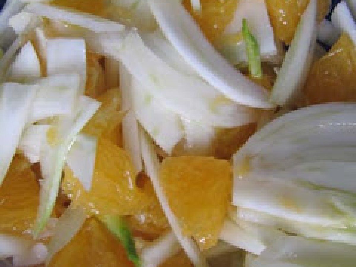 Insalata di arance e finocchi PrecedenteProssimo Antipastofacile20 min Invia questa ricetta ad un amico Stampa la ricetta Contatta l'autore della Ricetta Pubblica la foto di questa ricetta Ingredienti 2 un finocchio cicciotto un'arancia olio e sale q.b.
