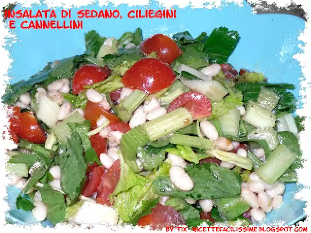Insalata di sedano, ciliegini e cannellini PrecedenteProssimo Antipastofacile35 min437 Kcal Invia questa ricetta ad un amico Stampa la ricetta Contatta l'autore della Ricetta Pubblica la foto di questa ricetta Ingredienti 2 sedano fresco 10-15 pomodori ciliegini 2 lattine di fagioli cannellini lessati sale olio extravergine d'oliva pepe Costo stimato: 2.34Euros€ (1.17€/Porzioni)