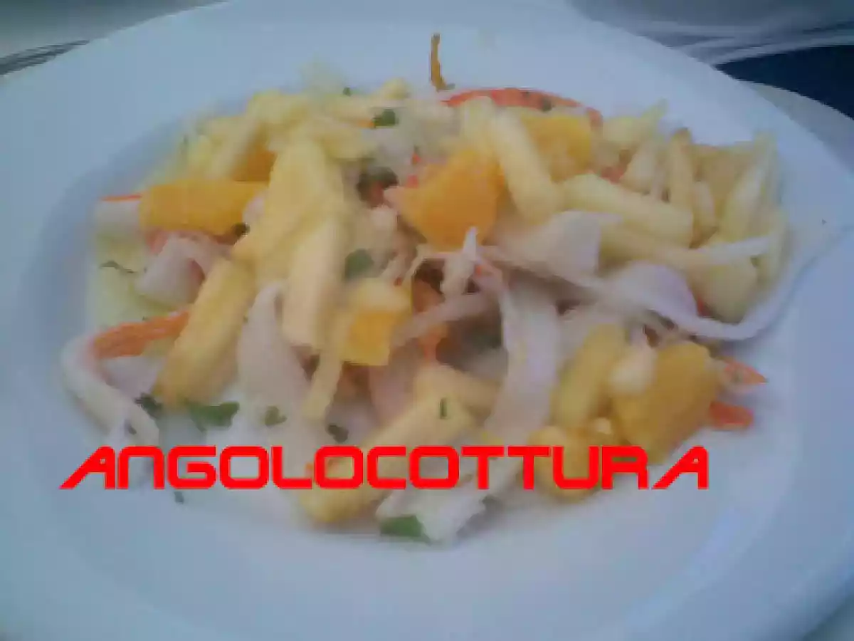 Insalata di surimi spiritosa PrecedenteProssimo Antipastofacile15 min Invia questa ricetta ad un amico Stampa la ricetta Contatta l'autore della Ricetta Pubblica la foto di questa ricetta Semplice, gustosa e molto gustoso. Ingredienti 4 1 confezione di surimi 1 mela 1 arancia prezzemolo 1 liome sale e pepe olio d'oliva