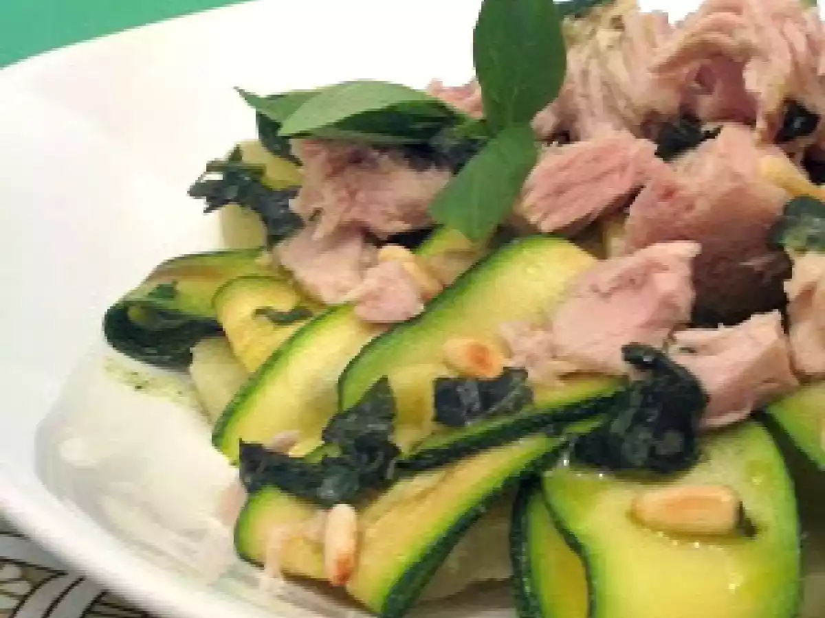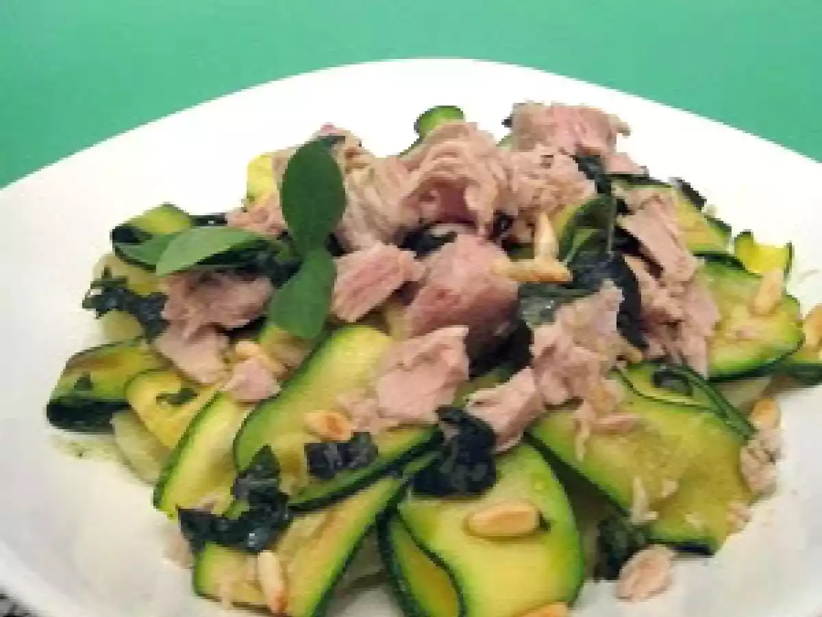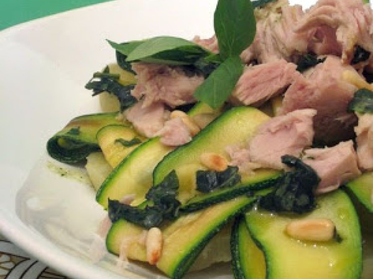 Insalata di tonno con zucchine, patate e salsa al basilico PrecedenteProssimo Antipastofacile20 min Invia questa ricetta ad un amico Stampa la ricetta Contatta l'autore della Ricetta Pubblica la foto di questa ricetta Questo è un altro modo di mangiare i bambini zucchine. Ingredienti 4 1 scatoletta di tonno al naturale da 80 g 1 zucchina tenera 1 patata lessa una manciatina di pinoli 5 foglie di basilico 1-2 cucchiai di olio extravergine d'oliva sale