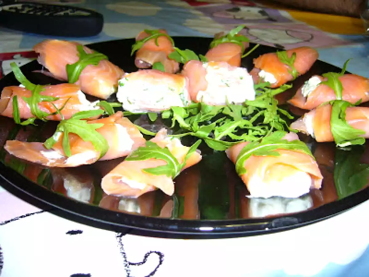 Involtini di salmone e philadelphia PrecedenteProssimo Antipastofacile40 min433 Kcal Invia questa ricetta ad un amico Stampa la ricetta Contatta l'autore della Ricetta Pubblica la foto di questa ricetta Una ricetta semplice ma molto gustoso! Ingredienti 2 200 g di salmone affumicato 150 g di philadelphia rucola qb olio sale pepe Costo stimato: 13.12Euros€ (6.56€/Porzioni)