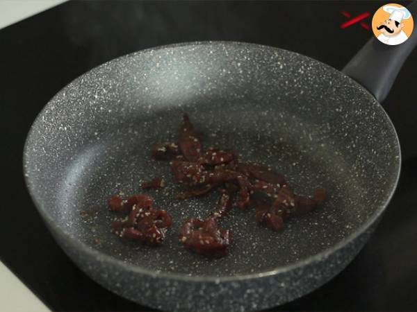 Passato questo tempo, cuocete la carne marinata in una padella calda per circa 5 minuti. Poi lasciate raffreddare.