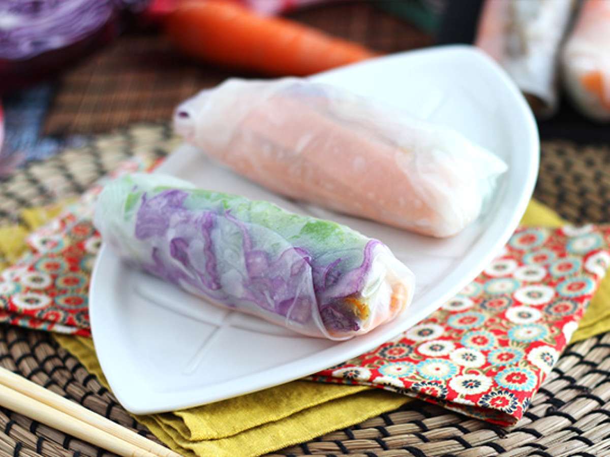 Ecco i nostri spettacolari involtini primavera vegani, un antipasto o uno snack salato da provare assolutamente se amate scoprire nuovi sapori. In questa ricetta li abbiamo farciti concavolo rosso, carote, patate dolci e, chiaramente, gli immancabili vermicelli di riso: un abbinamento da acquolina in bocca che stupirà tutti. A fondo pagina troverete anche il nostro tutorial video che vi mostrerà il procedimento per chiudere al meglio l'involtino primavera, date un'occhiata!