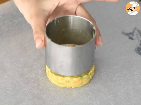 Ora formate i vostri medaglioni su una teglia foderata da carta da forno. (l'ideale sarebbe utilizzare degli anelli da cucina per avere una forma perfetta).