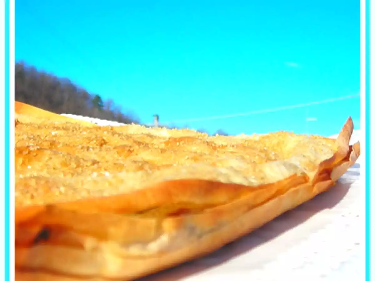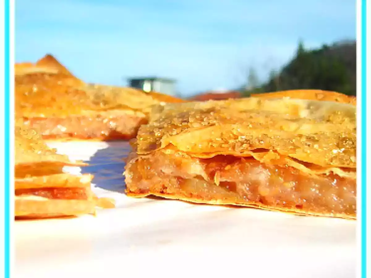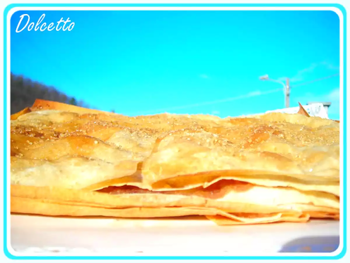 Millefoglie di pasta fillo con mele, biscotti e confettura di mirtilli