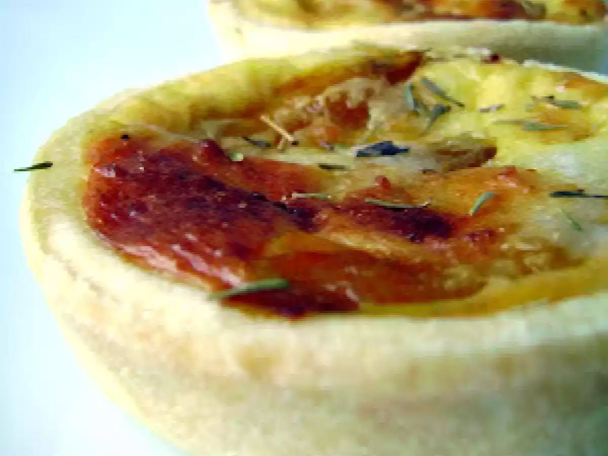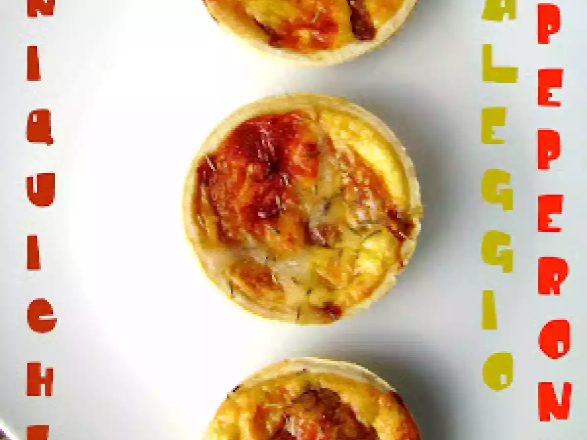 Mini quiches taleggio e peperoni PrecedenteProssimo Antipastofacile50 min Invia questa ricetta ad un amico Stampa la ricetta Contatta l'autore della Ricetta Pubblica la foto di questa ricetta Per iniziare il pasto nel migliore dei modi Ingredienti 6 200g di farina 5 g di sale 90 g di burro a pezzetti 1 uovo 20 g di acqua fredda Per il ripieno: 2 peperoni rossi 80 g di parmigiano gratt. 150 g di taleggio 3 uova 1,5 dl di latte sale e pepe timo