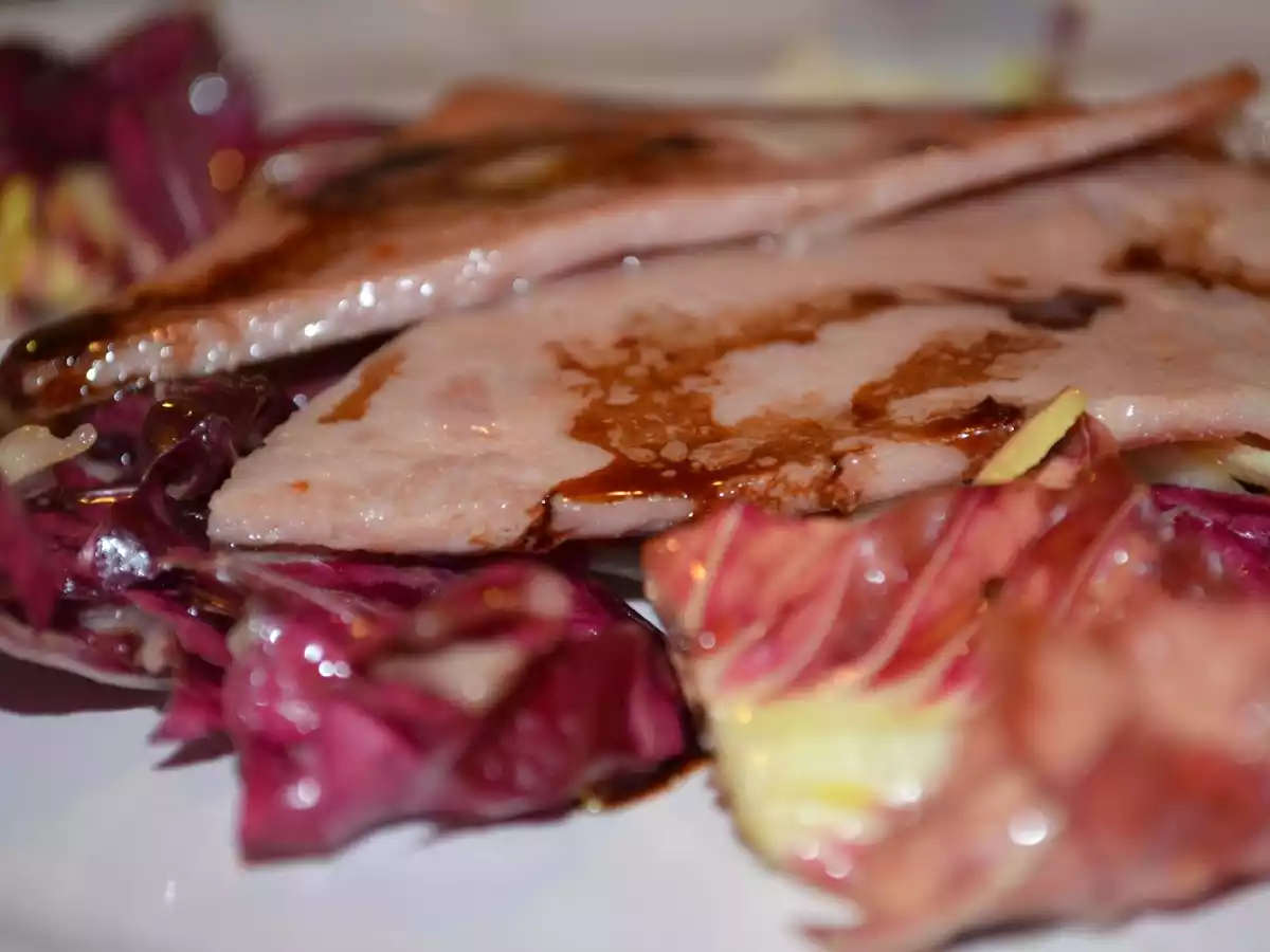 Mortadella alla piastra Antipastofacile11 min Invia questa ricetta ad un amico Stampa la ricetta Contatta l'autore della Ricetta Pubblica la foto di questa ricetta gustoso antipasto Ingredienti 2 1 cespo di radicchio 2 etti di mortadella in un'unica fetta Olio Sale Per la riduzione di aceto balsamico 1/2 bicchierino aceto balsamico 1/2 cucchiaino zucchero