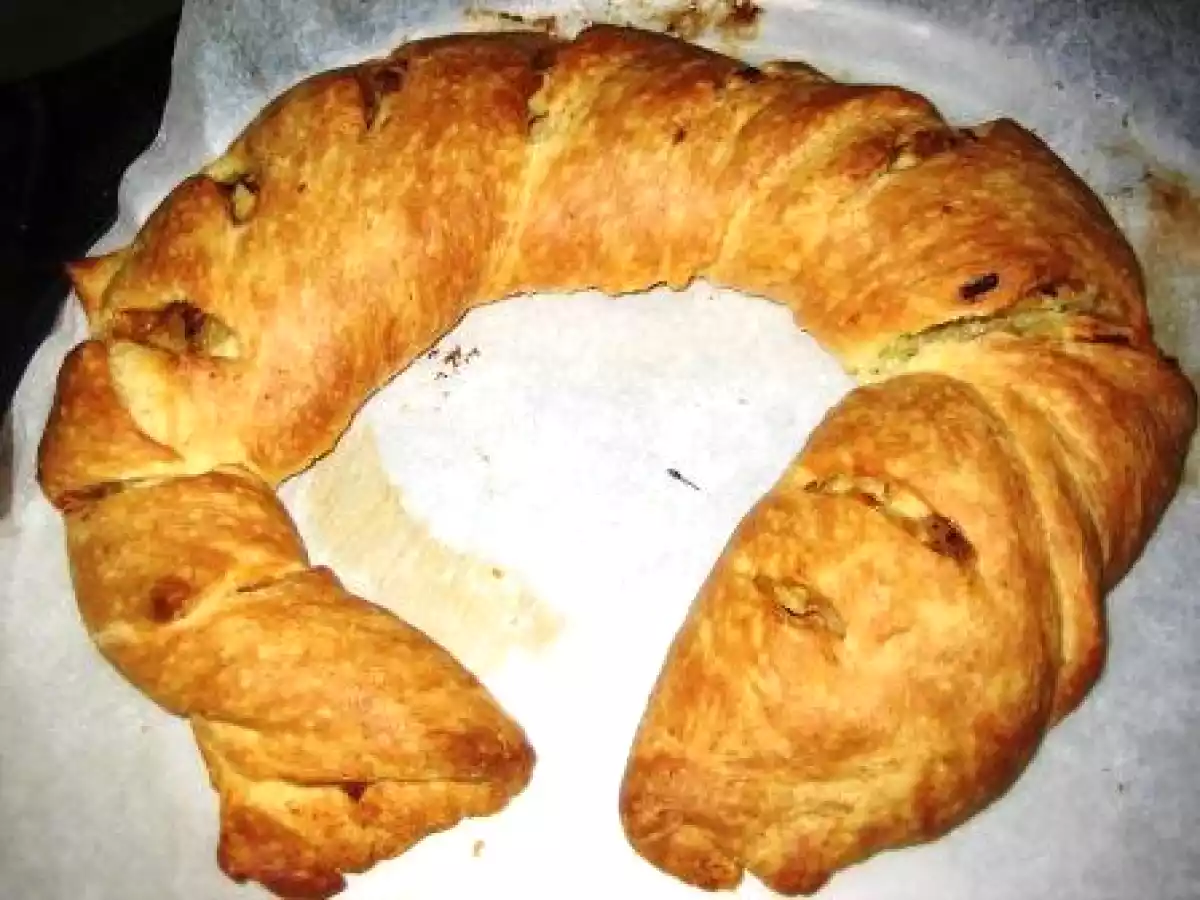 Pane condito alla cipolla Antipastomedia1 ora Invia questa ricetta ad un amico Stampa la ricetta Contatta l'autore della Ricetta Pubblica la foto di questa ricetta Ingredienti 8 Dose per 3 panini a ferro di cavallo Ingredienti: 550 gr di farina bianca 1 bustina di lievito disidratato per pane/pizza 75 ml di acqua 3 cucchiai di grana grattugiato 120 ml latte tiepido 2 uova 2 cucchiaini di zucchero 1 cucchiaino sale 100 burro morbido Ripieno: 3 cipolle grosse