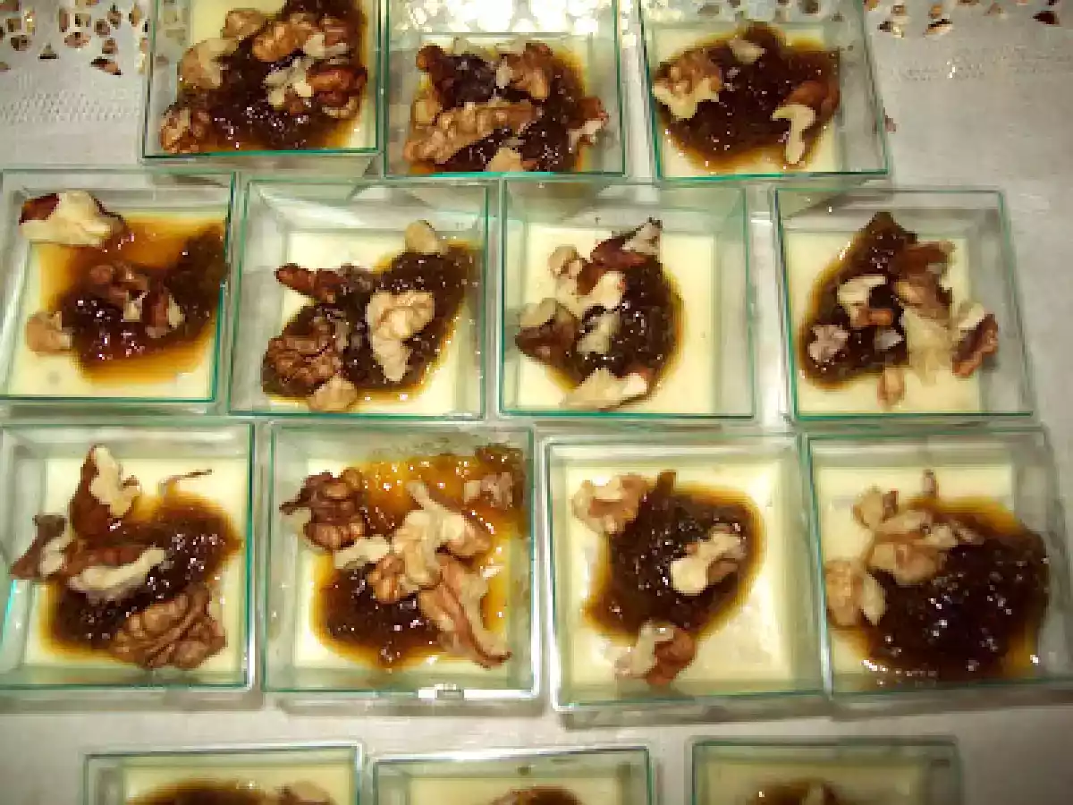 Panna cotta al gorgonzola e marmellata di peperoni al marsala con noci