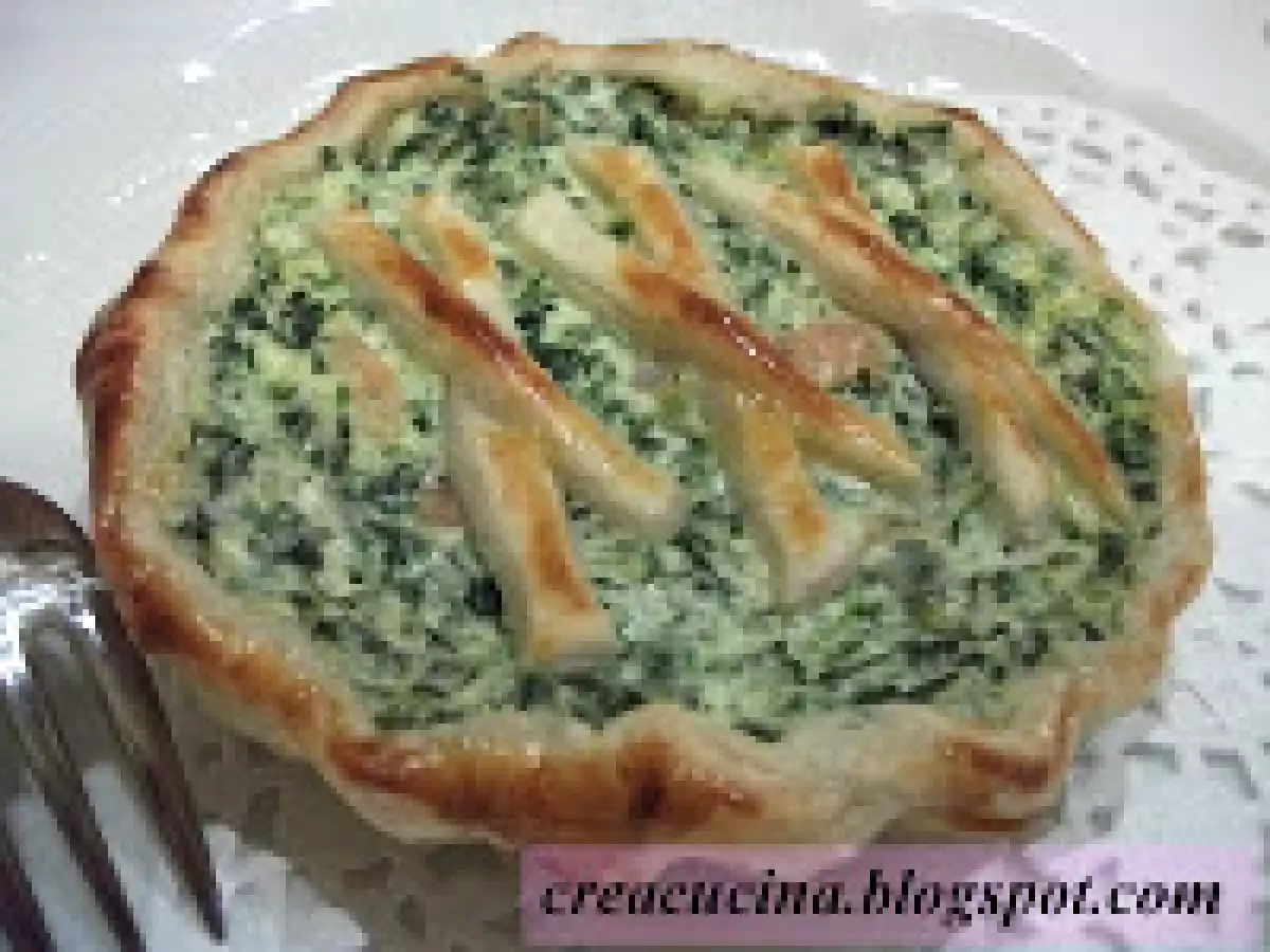 Piccole quiche ricotta, spinaci e gamberetti PrecedenteProssimo Antipastofacile35 min503 Kcal Invia questa ricetta ad un amico Stampa la ricetta Contatta l'autore della Ricetta Pubblica la foto di questa ricetta Ingredienti 4 un rotolo di pasta sfoglia 150 g di spinaci già lessati 250 g di ricotta 70 g di gamberetti sgusciati 50 g di parmigiano reggiano grattugiato 1 uovo intero 1 tuorlo per la spennellatura sale e pepe noce moscata Costo stimato: 5.53Euros€ (1.38€/Porzioni)