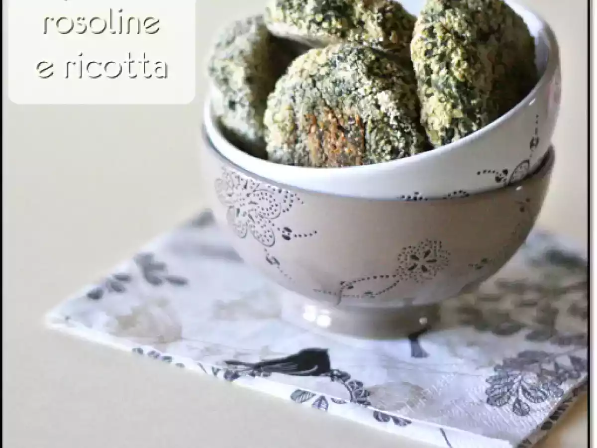 Polpette di rosoline e ricotta PrecedenteProssimo Antipastofacile50 min Invia questa ricetta ad un amico Stampa la ricetta Contatta l'autore della Ricetta Pubblica la foto di questa ricetta Ingredienti 1 100 gr di rosoline già cotte 100 gr di ricotta 1 uovo 2 cucchiai di ricotta salata pangrattato