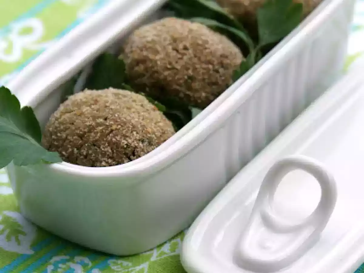 Polpettine di ceci e sardine al forno Antipastofacile35 min84 Kcal Invia questa ricetta ad un amico Stampa la ricetta Contatta l'autore della Ricetta Pubblica la foto di questa ricetta Ingredienti 4 1 scatola di ceci precotti 1 scatola di sardine 1 cipollotto piccolino 1 mazzetto di prezzemolo pangrattato sale e pepe Costo stimato: 0.82Euros€ (0.2€/Porzioni)