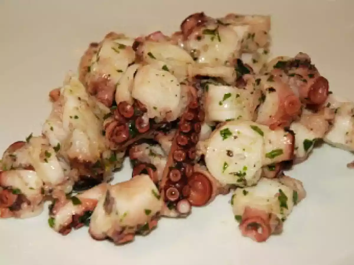 Polpo (o polipo o piovra) con colatura di alici e foglie di sedano