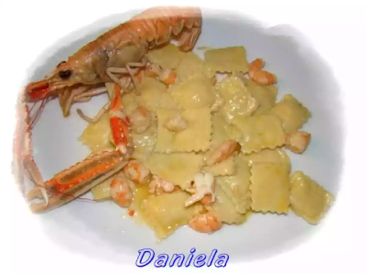 Ravioli di pescatrice con sugo di gamberi e scampi
