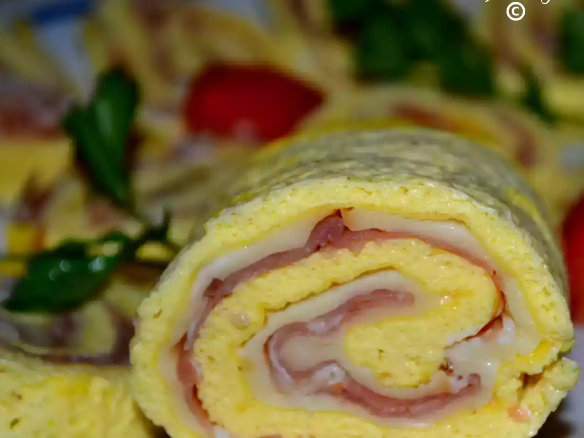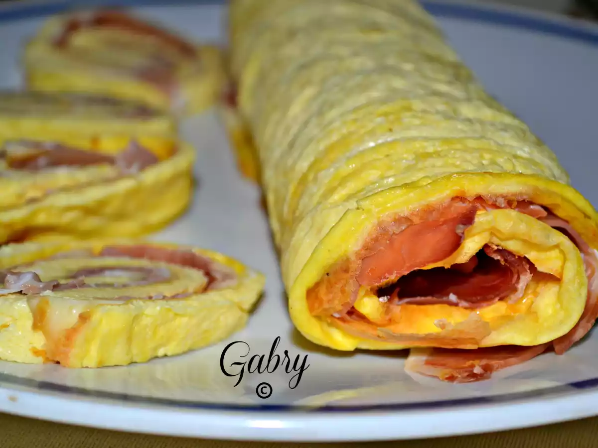 Rotolo di frittata al forno con provola affumicata e prosciutto crudo