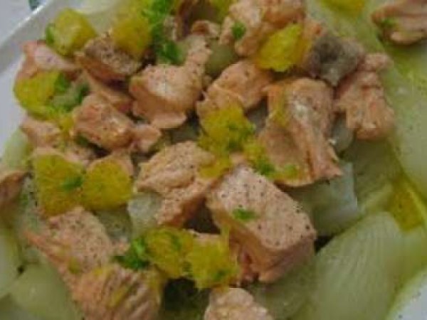 Salmone al profumo di arancia al vapore Antipastofacile30 min340 Kcal Invia questa ricetta ad un amico Stampa la ricetta Contatta l'autore della Ricetta Pubblica la foto di questa ricetta Ingredienti 2 2 tranci di salmone 2 finocchi 1 arancia olio evo sale pepe Costo stimato: 5.35Euros€ (2.67€/Porzioni)